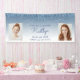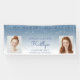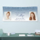 Bienvenidos invitados a la fiesta de graduación o simplemente anuncien su logro con esta pancarta de fotos glamorosa y moda, con un purpurina azul brillante y un fondo sombrío azul. Reemplace fácilmente las dos imágenes de muestra con fotos del graduado. Personalízalo con su nombre en escritura a mano azul, con el año de clase y la escuela en letra sans serif. Perfecto para graduación de secundaria o universitaria.
