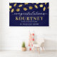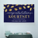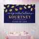 Celebra tu graduación con estilo con nuestro moderno cartel de fiesta. Con un sofisticado fondo azul marino que se puede personalizar a cualquier color de su elección, este banner eleva aún más el ánimo con su diseño de casquillos falsos de Relieve metalizado dorado de morteros. Para hacerlo más personal, incluye una plantilla de texto de felicitaciones que puede modificar fácilmente. Combinando perfectamente estética y personalización, este banner es imprescindible para cualquier fiesta contemporánea de graduación.