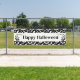 Esta pancarta se muestra con una estampada festiva de murciélagos de Halloween. Al aire libre con las arandelas mostradas. Personalizar este cartel o compra tal cual. Elija entre muchos tamaños, interior o exterior.
