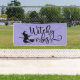 Esta pancarta se muestra con una orquesta festiva de Halloween con vibes brujas impreso. Se muestra al aire libre Personalizar este cartel o compra tal cual. Elija entre muchos tamaños, interior o exterior.
