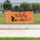 Esta pancarta se muestra con una orquesta festiva de Halloween con vibes brujas impreso. Se muestra al aire libre Personalizar este cartel o compra tal cual. Elija entre muchos tamaños, interior o exterior.