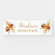 Marca tu nombre de negocio de miel con esta gran pancarta de 2 metros de largo, con ilustraciones marrones dorados de abejas. Personalice el texto para su negocio de apicultura. Ideal para su uso frente a su tienda, mercado de agricultores y ferias.
