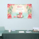 Banner elegante y lindo con un adorable bebé flamingo y flores tropicales rosadas para una ducha chica de verano o cualquier fiesta de temática tropical. Personaliza fácilmente el texto. - Kate Eden Art