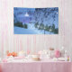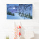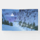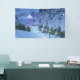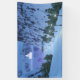 Un paisaje de fantasía 3D lleno de nieve brillante y mágicas luces de hadas. Una hilera de lámparas resplandecientes y silenciosas ilumina el camino a través de una montaña nevada rodeada de acantilados rocosos. El brillante camino cubierto de nieve está cercado por abetos oscuros. Al otro lado de la hendidura, un translúcido y brillante castillo de hadas le espera al encantador viajero en su viaje a tierra de hadas.