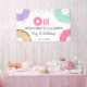 Banner de donut fiesta para un primer cumpleaños (o cualquier año) - fácil de cambiar el texto para hacerlo especial para su evento. Donuts morados, verdes, crema y rosados con montones y montones de rociadores.