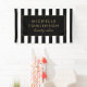 Coordina con la plantilla de tarjetas de visita Black and White Stripes Salon III y los suministros de oficina antes de las 12.00 horas. El nombre o el nombre de la empresa se muestran con elegancia sobre un fondo rayado en blanco y negro para una estética muy moda y elegante. Este banner personalizado es muy útil para la señalización, las ferias, las pantallas de las cabinas y mucho más. © 1201AM CREATIVE