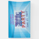 Banner temático de fiesta de los 2000 con una tipografía en 3D de "FIESTA 2000". El diseño incluye elementos de azul, rosa, verde lima y púrpura, y un diseño tridimensional inspirado en la década de 2000. Incluye una plantilla para personalización personal.