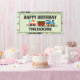 Trenes y pistas para niños - Cartel de un fiesta con el FELIZ CUMPLEAÑOS, un lindo tren y el nombre del invitado de honor. Es la manera perfecta de decir que este es el lugar... que empiece la fiesta. Decoración y deleite a los amantes del tren.