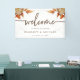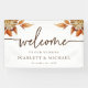 Cartel del Boda de Bienvenida Caída. Esta elegante pancarta nupcial incluye naranja quemado con acuarela pintada a mano y hojas de terracota, dahlias crema y beige, y hermosos rosas de color rojizo sobre un fondo blanco con texto marrón. Buscar elementos coincidentes en la colección Romance de otoño blanco.