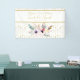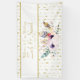 El hermoso ilustracion acuático Boho presenta flores y plumas sobre blanco con fondo de flechas doradas. Personalizar con los detalles de la pareja boda