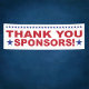 Gracias Patrocinadores del evento con diseño de grandes estrellas rojas y azules para agradecer públicamente a los patrocinadores de su evento. Agregue un color de fondo si lo desea. Asegúrese de pedir la versión al aire libre si va a usar esto en un evento al aire libre como una carrera o una maratón, para que pueda aguantar el tiempo.