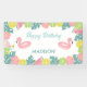 Flores y hojas tropicales retro, con frutas y un bonito flotador flamingo para el perfecto fiesta chica de la piscina.