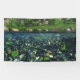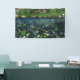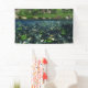 Escena submarina dividida con un valle verde por encima y las profundidades frías de un río montañoso rocoso por debajo. Los rayos solares bailan a través del agua y los bancos de peces plateados nadan entre las piedras y las malezas del lecho del río.