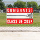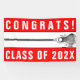 Diseño deportivo de lacrosse creativo y congrats alineados en un fondo rojo. Editar texto para añadir año.