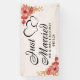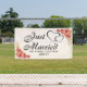 Añada un toque de elegancia contemporánea a su gran salida con nuestro moderno banner cursivo "Just Married", diseñado para su coche de escape. Este elegante banner cuenta con elegantes letras cursivas que captan perfectamente la alegría y la emoción de su día especial. Celebra tu nuevo estatus de moda a medida que te alejas con este banner bellamente hecho, haciendo que tu partida sea tan inolvidable como el resto de tu boda.
