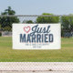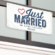 Añada un toque de elegancia contemporánea a su gran salida con nuestro moderno banner cursivo "Just Married", diseñado para su coche de escape. Este elegante banner cuenta con elegantes letras cursivas que captan perfectamente la alegría y la emoción de su día especial. Celebra tu nuevo estatus de moda a medida que te alejas con este banner bellamente hecho, haciendo que tu partida sea tan inolvidable como el resto de tu boda.