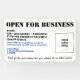 Rótulo abierto para empresas de cualquier tamaño. Bienvenido a sus clientes y clientes de vuelta a su establecimiento con este banner al aire libre. Personalice con su propio logotipo, horas y pautas de negocio para la reapertura de su negocio y comunidad. Agregue una imagen o color al fondo para que coincida con su marca comercial. Grommets incluidos para ahorcamiento más fácil