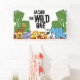 Personalice fácilmente este cartel de safari con el nombre de su hijo, con una jirafa, cebra, hipopótamo, tigre, león, elefante y hojas de la selva.