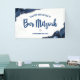 ¡Estén orgullosos, alégrense y muestren este hito de su Bar Mitzvah favorito! Cuelguen esta bandera genial, única, moderna y personalizada para agregar a su día especial. La tipografía de escritura en azul marino y una Estrella de David plateada se superponen en un fondo blanco simple con rocas de ágata azul acero acentuadas con vetas plateadas falsas. Personalice el texto personalizado con el nombre y la fecha de su Bar Mitzvah o un mensaje personalizado. ¡Garantizado para preservar los recuerdos queridos de su ocasión especial! También están disponibles invitaciones, etiquetas de dirección, pegatinas, carpetas de recuerdos y otros regalos de Bar Mitzvah en esta colección moderna y especial.
