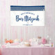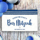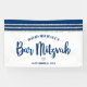 ¡Estén orgullosos, alégrense y muestren este hito de su Bar Mitzvah favorito! Cuelguen esta bandera fresca, única, moderna y personalizada para agregar a su día especial. Una tipografía de escritura en negrita y azul marino, una Estrella de David plateada y un gráfico inspirado en un tallit a rayas azules y plateadas se superponen sobre un fondo blanco simple. Personalice el texto personalizado con el nombre y la fecha de su Bar Mitzvah o un mensaje personalizado. ¡Garantizado para preservar los recuerdos queridos de su ocasión especial! También están disponibles invitaciones, etiquetas de dirección, stickers, carpetas de recuerdos y otros regalos de Bar Mitzvah que coinciden y se coordinan en esta colección moderna y especial.