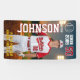 Personalized senior sports banner for athlete and sports player. This customizable design template is perfect for homecoming sports event, senior night, sports award banquet or graduation party décor for your athlete son, daughter or student. It's a great way to display player portrait and memories from their sports games. The design features abstract background, and it can be customized with names, player jersey number, school teams or any custom text. It makes a unique and meaningful decoration for your player.