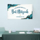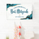 ¡Estén orgullosos, alégrense y muestren este hito de su Bat Mitzvah favorita! Cuelguen esta bandera fresca, única, moderna y personalizada para agregar a su día especial. La tipografía de escritura en azul turquesa oscuro y la Estrella de David de oro falso se superponen en un fondo blanco simple y limpio con rocas de ágata azul turquesa acentuadas con venas de oro falso. Personalice el texto personalizado con el nombre y la fecha de su Bat Mitzvah o mensaje personalizado. ¡Garantizado para preservar los recuerdos queridos de su ocasión especial! También están disponibles invitaciones, etiquetas de dirección, stickers, tarjetas de agradecimiento, carpetas de recuerdos y otros regalos de Bat Mitzvah en esta colección de moda y especial.