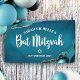 ¡Estén orgullosos, alégrense y muestren este hito de su Bat Mitzvah favorita! Cuelguen esta bandera fresca, única, moderna y personalizada para agregar a su día especial. La tipografía de caligrafía blanca, la tipografía sans serif blanca en negrita y la Estrella de David dorada falsa se superponen sobre un fondo degradado de azul turquesa profundo con acentos de ágata azul turquesa y vetas doradas falsas. Personalice el texto personalizado con el nombre y la fecha de su Bat Mitzvah o un mensaje personalizado. Garantizado para preservar los recuerdos queridos de su ocasión especial. También están disponibles invitaciones, etiquetas de dirección, pegatinas, tarjetas de agradecimiento, carpetas de recuerdos y otros regalos de Bat Mitzvah que coinciden y se coordinan en esta colección trendy y especial.