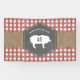 Diseño rojo resistido de la guinga con la tira de la arpillera con diseño geométrico de la pizarra con la silueta del cerdo. Personalice el texto.