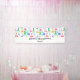Banner de negocios con un patrón divertido y colorido. Los investigadores científicos vivirán con vasos y frascos de diferentes formas y tamaños en colores alegres y brillantes.