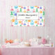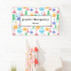 Banner de negocios con un patrón divertido y colorido. Los investigadores científicos vivirán con vasos y frascos de diferentes formas y tamaños en colores alegres y brillantes.