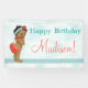 Bebé vintage adorable con traje de baño rojo con una banda de flores. Fondo acuático Aqua y cinta florida con guarnecido de encaje. Ideal para la fiesta de cumpleaños de los niños, el fiesta de la piscina, la ducha de bebé o la invitación para bebés.