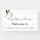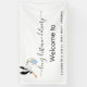 Para un paseo a través de una ducha de bebé celebrando a un niño. Un fondo blanco moda. Con una linda cigüeña voladora sosteniendo a un bebé. Personalice y agregue el nombre de la futura madre. Con el texto "Entrega a larga distancia" y "Bienvenidos a". La entrega a larga distancia está escrita con un guión moderno y moderno con letras a mano con chispas. Cartas negras. Sencillo, minimalista y de diseño.