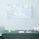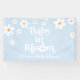 ¡Bebé en Bloom! Pancarta de la margarita de estilo retro con margarita de los años 70 y fuentes y colores boho. azul pálido.