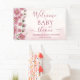 Lona Bebé en Chica de bienvenida con flores rosadas