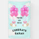 Bandera de shower de bebé de gemelas con globos rosados. Para personalizar, edite el texto para agregar nombres.