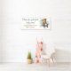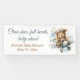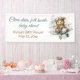 Celebra la llegada de tu pequeño con esta encantadora pancarta de baby shower con tema de aviación que presenta la frase "Cielos despejados, corazones llenos, bebé en camino". Un dulce osito piloto vuela a través de nubes de acuarela en un avión antiguo, creando una atmósfera caprichosa y conmovedora. Personalizada con el nombre de la futura mamá y la fecha de la ducha, esta gran pancarta de 2,5' x 6' es un perfecto telón de fondo para entradas, mesas de postres o fotos. Ideal para duchas de niño o de género neutral con un tema de viaje o aventura.