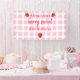 Fiesta de cumpleaños de berry dulce con fresas y fondo con motivos rosas
