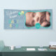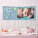 Este dulce diseño de 'Bienvenidos a casa niño bebé' tiene una plantilla para personalizar con la foto, nombre, edad y peso de su bebé sobre un alegre fondo blanco sobre fondo azul, punto de polka.