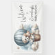 Ducha de bebé con temática de aventura Banner de bienvenida con un adorable cachorro blanco sosteniendo a un oso de peluche montando en un globo azul de aire caliente. El cielo azul acuático tiene nubes blancas con estrellas doradas que lo rodean. Plantilla incluida.