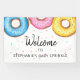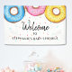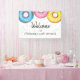¿Está planeando una rociada neutra para el género? Esta pancarta de bienvenida con un toque de color personalizable es rosa, azul y amarillo, tipografía elegante y salpicaduras de colores. Acuarela original © Michele Davies.