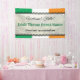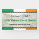 Banner de bienvenida para cualquier evento temático irlandés o irlandés tiene un fondo de la bandera de Irlanda en verde, blanco y naranja. El centro es una imagen vintage descolorida del campo de Antrim, con un borde de nudo clásico. Utilícelo para cualquier celebración, festival o fiesta temática irlandesa. Todo el texto se puede editar.