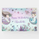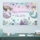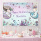 Las sirenas musicales acogen una pancarta de fondo, con dos hermosas sirenas, adorables bajo las criaturas del mar y corales coloridos contra el fondo del océano profundo arcoiris. Personalízalo con tus detalles de forma fácil y rápida, simplemente pulsa el botón personalizar it para reorganizar y formatear el estilo y la ubicación del texto. ¡Artículos coincidentes disponibles en la tienda! (c) El estudio Happy Cat Studio.