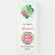 Esta bonita pancarta es perfecta para una fiesta de primer cumpleaños para una niña que se está convirtiendo en una este verano. Un grupo festivo de globos con temática de sandía flota en la parte superior, y las palabras "One in a Melon" aparecen en blanco sobre una sandía rosa y verde redondeada. Agregue el nombre del chica de cumpleaños en escritura rosa. El texto restante se encuentra en un tipo de letra serif lúdico fuera de negro.
