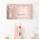 Cartel de bienvenida para una fiesta de cumpleaños número 15 de una chica y glamurosa. Un falso fondo metálico de rosa dorado con un elegante oro falso de rosa, goteos en purpurina rosa, pinturas con goteo y un par de zapatos de bailarina. Personalice y agregue un nombre. El nombre está escrito en oro rosa oscuro con una escritura de estilo moderno con letras a mano.