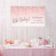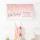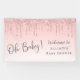 Una bonita pancarta de bienvenida para su ducha de bebé, que incluye un purpurina falso rosa goteando desde la parte superior y "¡Oh bebé!" en un elegante guión gris suave contra un fondo rosa oscuro. Puedes personalizar fácilmente el nombre de la futura madre.