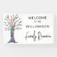 Añada este moderno y elegante cartel de bienvenida familiar a su decoración familiar. Cuenta con un colorido árbol familiar de mosaicos. Personalizable fácil. Mosaico original y acuarela © Michele Davies.