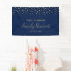 Este moderno banner de bienvenida es perfecto para una elegante fiesta de reunión familiar azul marino y dorado. Un banner de fiesta personalizado y elegante para recordar tu día especial. El diseño presenta tipografía dorada "Reunión Familiar" con fondo de confeti. Puedes personalizar el texto y el color de fondo. Más suministros para eventos están disponibles en mi tienda BaraBomDesgin.
