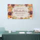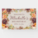 Elegante cartel de "Bienvenida" con el nombre de la invitada de honor, su edad y su fecha fiesta, vestido con elegancia de roya burdeos, naranja y color crema floral y follaje. Comuníquese conmigo para obtener ayuda con sus personalizaciones o para solicitar productos adicionales de correspondencias o coordinación de Zazzle para su fiesta.