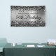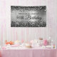 Una moderna y elegante caligrafía con un estilo moderno de letra de estilo "todo tipo de mayúsculas". Crea tu propio signo de bienvenida de celebración de cumpleaños para tu amigo. El fondo cuenta con un falso purpurina negro brillante en el borde superior con un gráfico de arte digital de Relieve metalizado metalizado plateado y gris plateado. Todo el brillo, purpurina y brillo se crean con gráficos digitales que se imprimen como una foto.