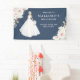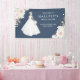 Bienvenido a la ducha de los huéspedes de la novia con una elegante pancarta de bienvenida que muestra la imagen de la novia. Hay varias opciones disponibles para vestir, peinado, color de pelo y tono de piel. Coordina con invitaciones de novias personalizados.